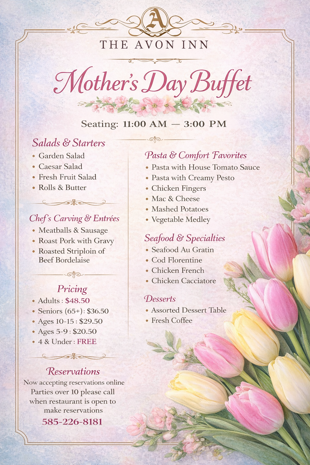 Open Thursday 4pm-8pm (Wing Night 10 for $10) Friday and Saturday 4pm-9pm. (585) 226-8181.